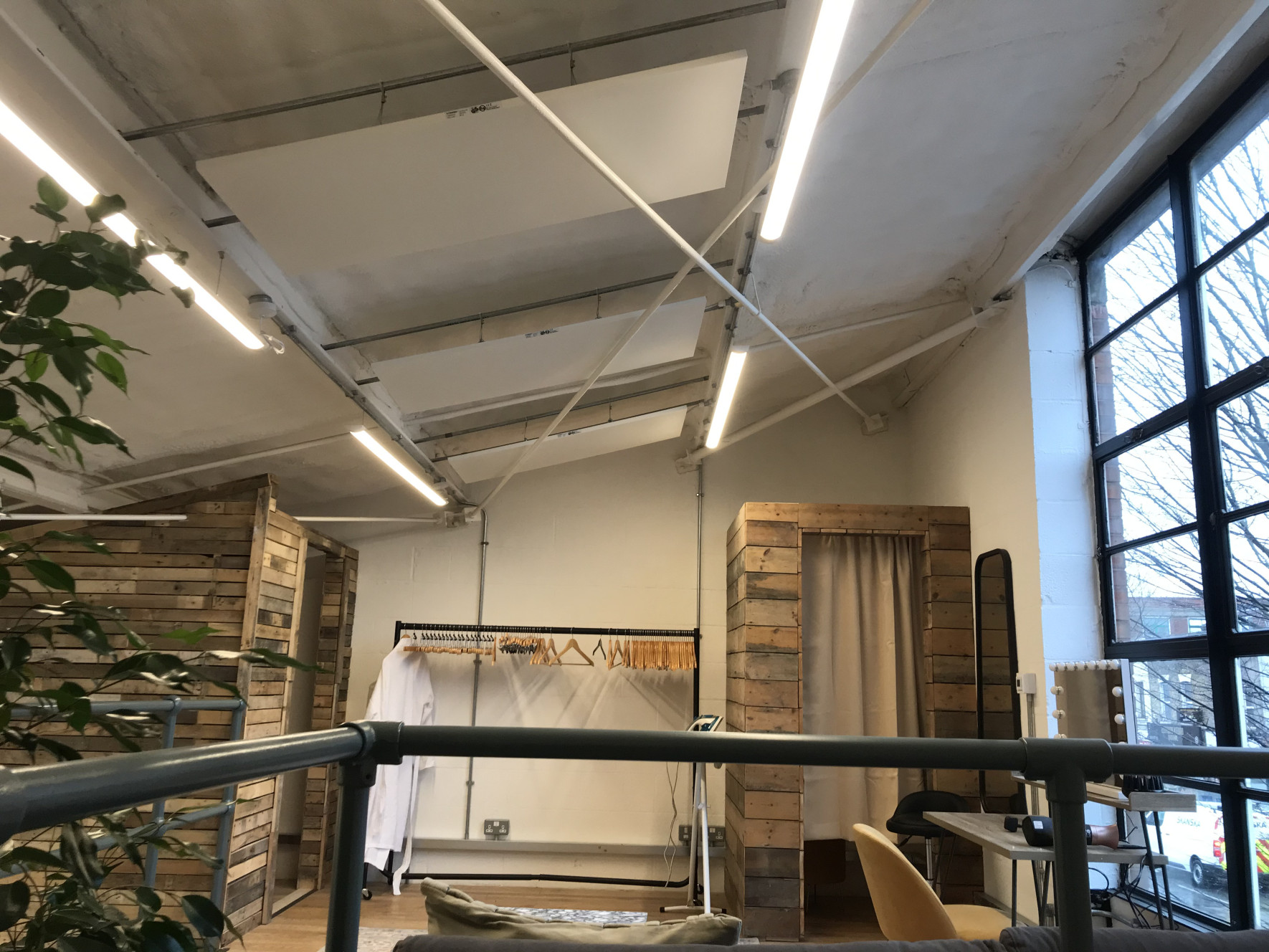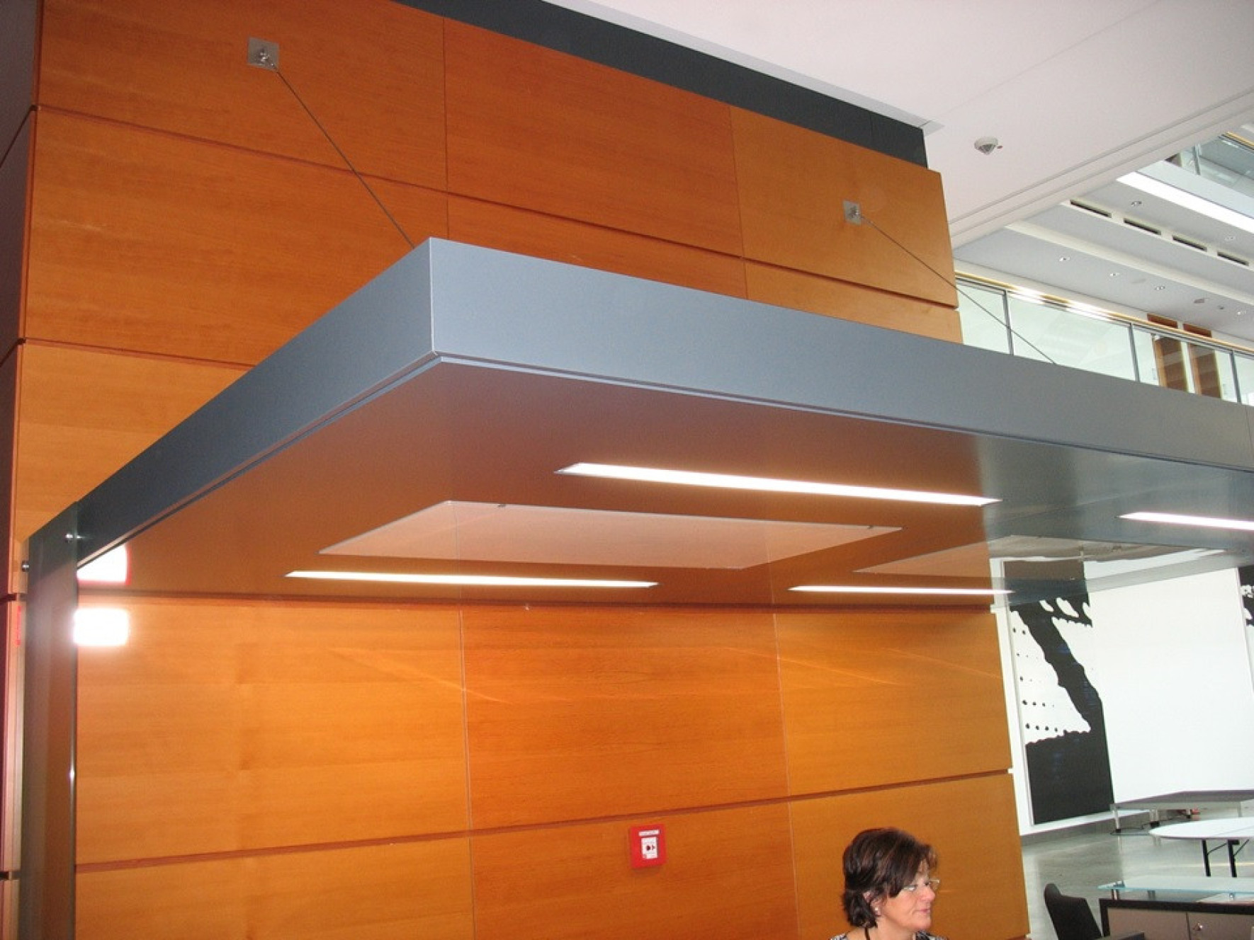 Yes. Panels can be ceiling-mounted or blended with finishes like frameless white or glass.